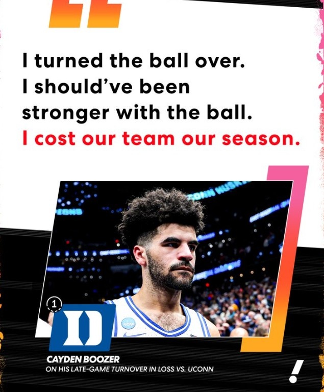 赛后,凯登·布泽尔接受了记者采访。谈到自己的关键时刻传球失误,他(带着哭腔)说道:“我失误了。我本应该更稳健地控制球权。这让我们整个赛季的努力付诸东流。”